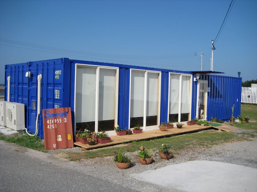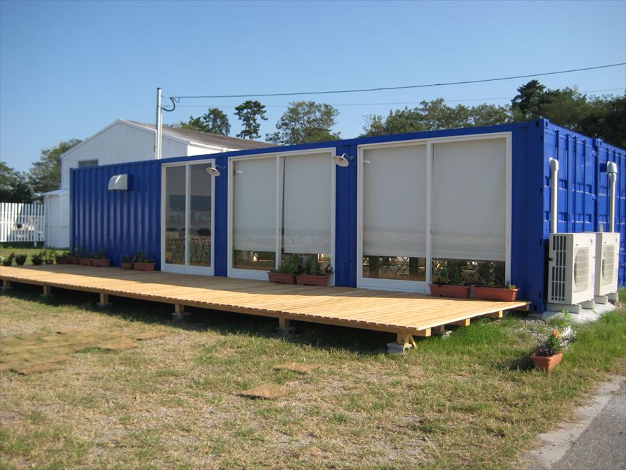 トレーラーのコンテナを2つ繋げたコンテナハウス。